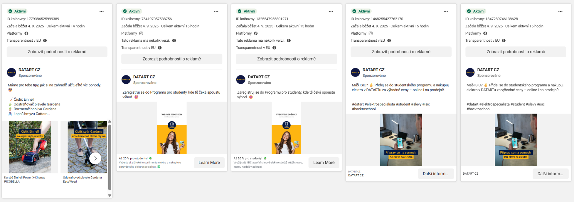 - Sledujte konkurenci, využijte knihovny reklam a sledujte nabídku podobných e-shopů.