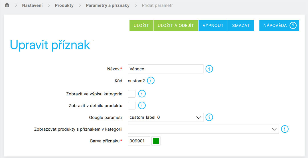 - Využijte "custom labels", označte Black Friday, vánoční tipy, dárky podle cílových skupin nebo cenové hladiny.